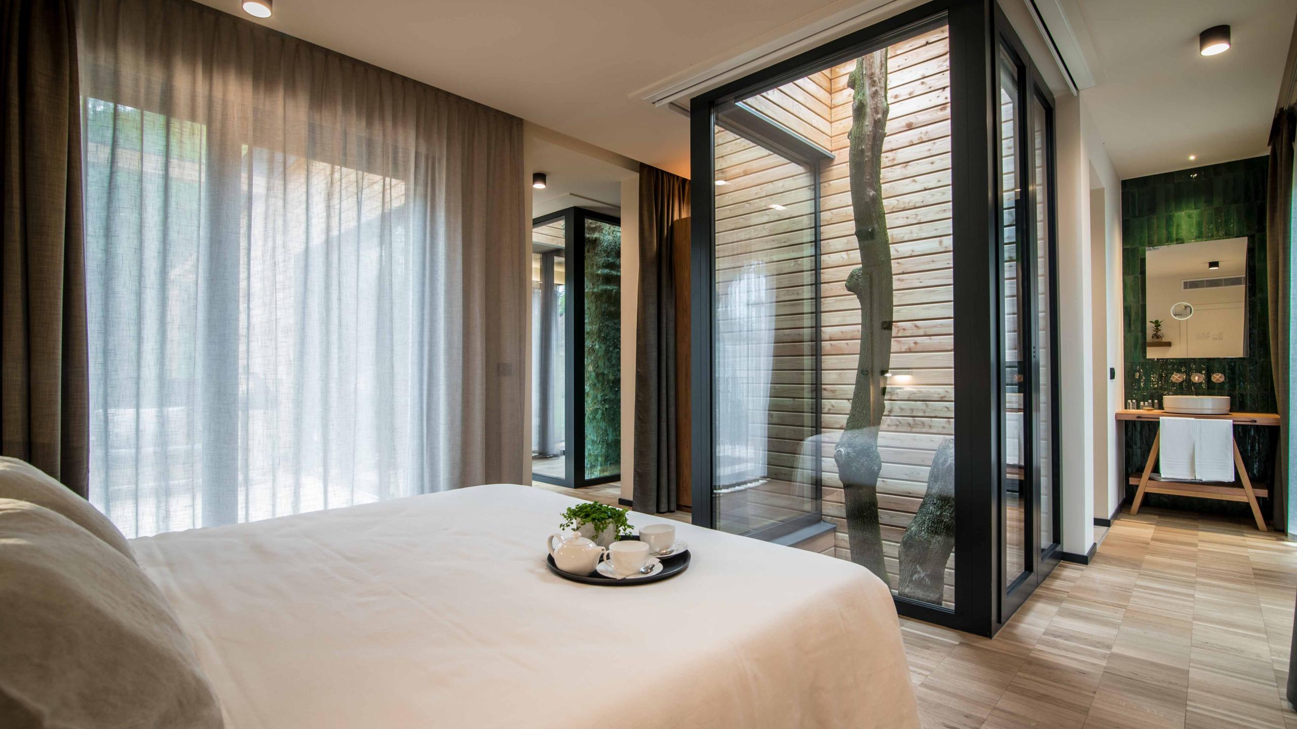 A sustainable architectural concept designed for true nature lovers: Cecilia Green Lodge has been respectfully developed around a plane tree and a field maple. Are you ready to spend your holiday with two majestic centuries-old trees and to enjoy a unique experience?